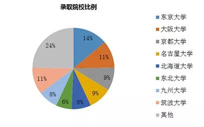 从录取占比看,录取前五学校分别是东京大学、大阪大学、京都大学、名古屋大学、北海道大学。