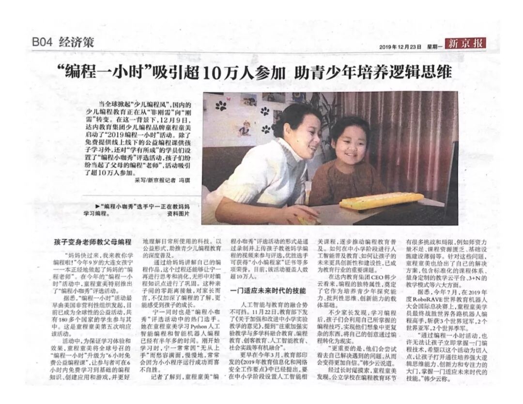 导读:教育驱动未来,科技成就梦想。2019年12月22日,由达内教育集团少儿编程品牌重磅启动的“编程一小时”活动圆满收官!本次活动通过线上线下公益编程课、大咖讲座全网直播累计影响受众达2600余万人,深度助推中国青少儿编程教育的普及,激发中国新一代创新精神!